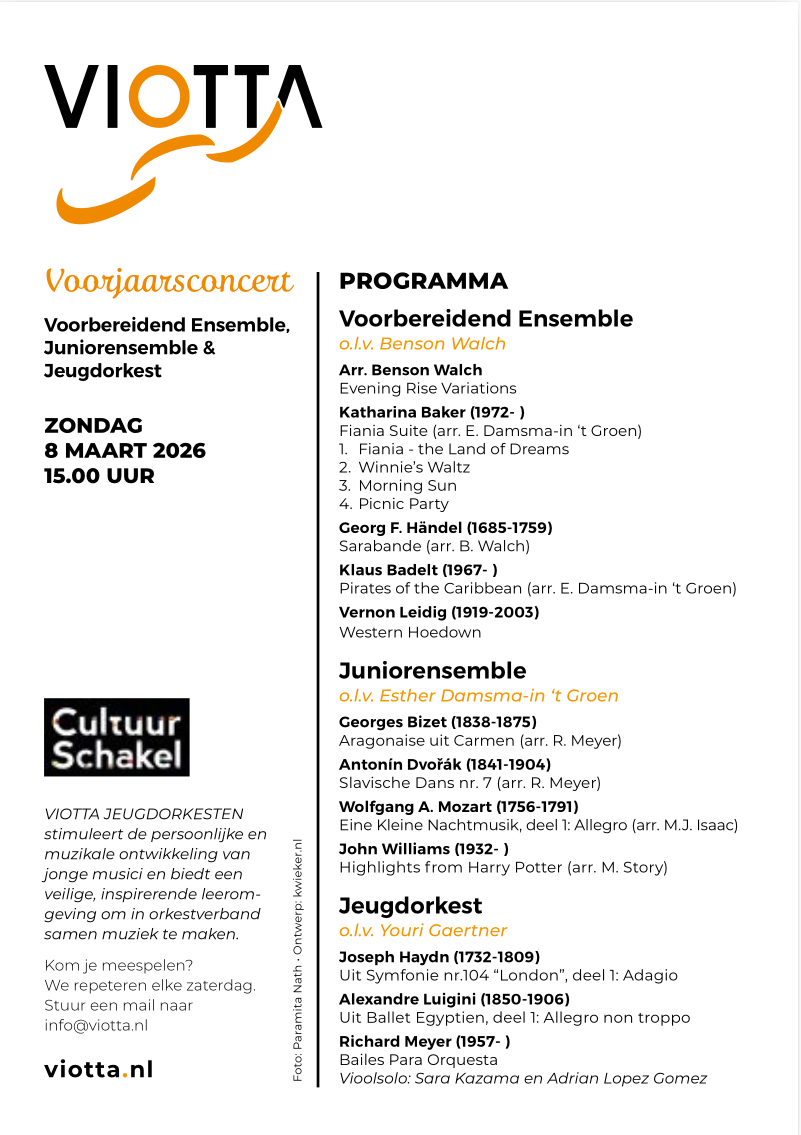 Op 8 maart staat er een zeer gevarieerd programma op de lessenaars bij onze jonge musici van Viotta!